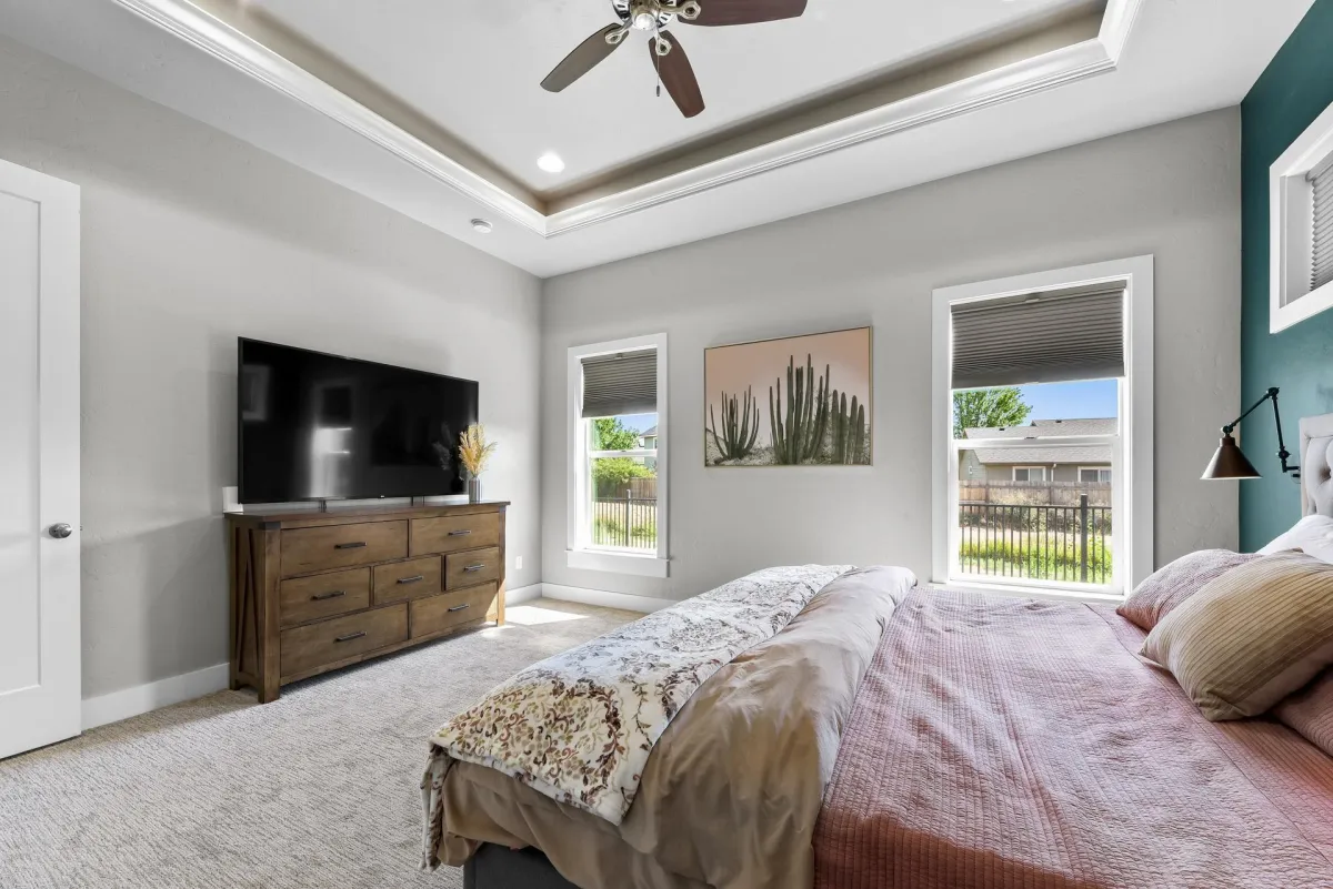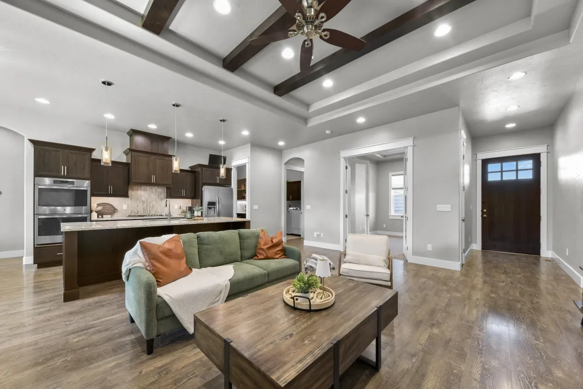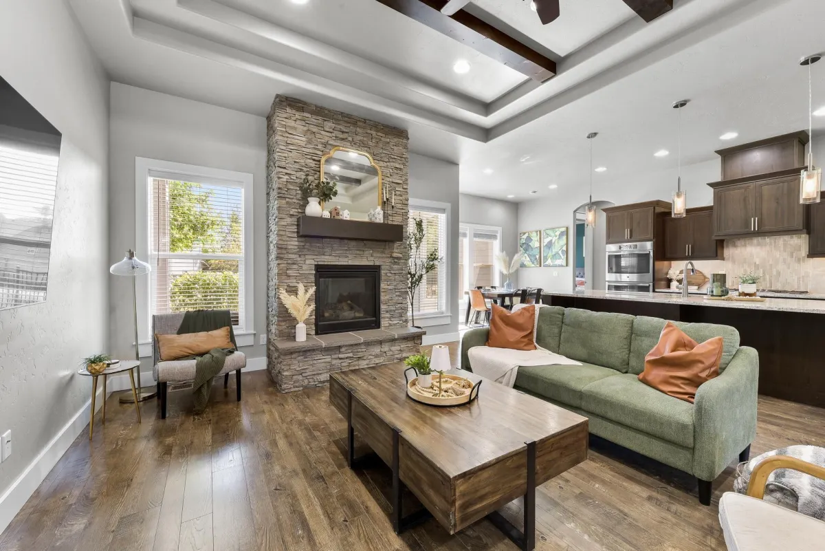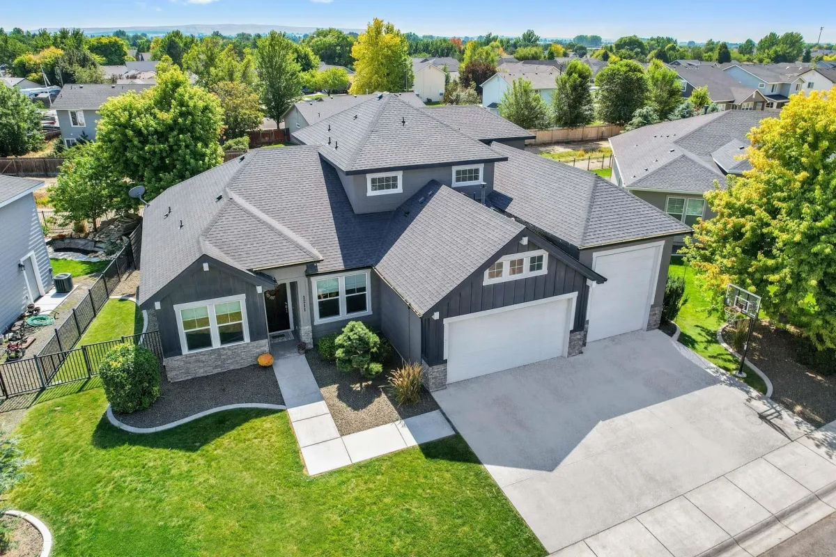 Stunning home in one of Kuna's most desirable neighborhoods offers 4 bedrooms, 3 baths and 2815 sq ft of well-designed living. the spacious main-level primary suite includes a beautiful bathroom retreat, while upstairs en-suite comes with its own family room & desk area. All bedrooms are generously sized, & the home also features a dedicated office & a large utility room. The kitchen is a true centerpiece with double ovens, a large island, granite throughout & full butler's pantry. high-end finishes include wood beams in the living room, a gas fireplace, engineered hardwood, tile & new carpet. A mudroom keeps things organized, while dual-zone HVAC & shutters upstairs add comfort & convenience. The heated garage with RV bay & workbench is perfect for storage, a sports bay, or RV parking. Outdoors, enjoy a large covered patio, wrought-iron fencing, an in-ground dog fence, security cameras & peaceful privacy with no backyard neighbors. A home of distinction in every detail, ready for its next chapter.